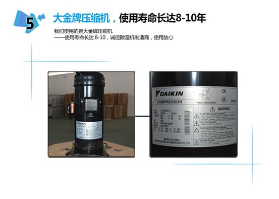 由風扇將潮濕空氣吸入機內(nèi),通過壓縮機制冷系統(tǒng)將蒸發(fā)器表面降到空氣的露點溫度以下,此時潮濕的空氣經(jīng)過蒸發(fā)器時,空氣中的水會分解出來并附在蒸發(fā)器表面(注:就像夏天我們從冰箱拿出一瓶水,一會瓶子的外面有一層冷凝水一樣的原理),水會順著蒸發(fā)器上的親水箔到積水托盤再流到水箱或排水管排出,除濕過的干燥冷空氣經(jīng)過冷凝器加熱后排出機外,如此循環(huán)使內(nèi)外溫度降低。
