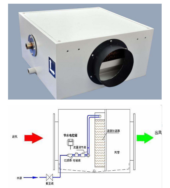 風(fēng)管濕膜加濕器是將濕膜加濕器和特制的風(fēng)管相結(jié)合,主要應(yīng)用于因組合空調(diào)機(jī)組或新風(fēng)機(jī)組中無(wú)法安裝加濕器所采用的一種加濕形式,它可以安裝于送風(fēng)管道的任何位置,滿足對(duì)整個(gè)空間或局部空間的加濕要求。