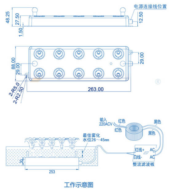 霧化配件的霧化片表面中心到水平面的垂直距離,單位為毫米(mm)。工作水位是影響霧化配件成霧量的重要因素。