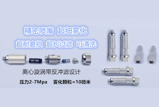利用高壓泵和高壓精微噴頭產(chǎn)生符合現(xiàn)場環(huán)境的霧粒吸附灰塵從而降塵。這一方法是利用精細(xì)的制造技術(shù),生產(chǎn)出符合流體力學(xué)原理的噴頭,同時(shí)通過高壓泵產(chǎn)生高壓水加壓到7Mpa,經(jīng)耐高壓管道系統(tǒng)傳送到噴頭,噴出細(xì)小的水霧。噴頭制造需要較高的技術(shù)。高壓噴霧降塵設(shè)備使得霧滴可達(dá)到5 - 100微米,適應(yīng)于不同的灰塵環(huán)境,同時(shí)很大地提高了蒸發(fā)效率,在水的汽化過程中吸收熱量,降低溫度、提高空氣相對濕度。由于空氣的濕度增加,因此將大大減少空氣中的有害粉塵,達(dá)到凈化空氣的作用。在使用過程中無水滴現(xiàn)象、霧化細(xì)、面積大。